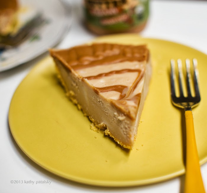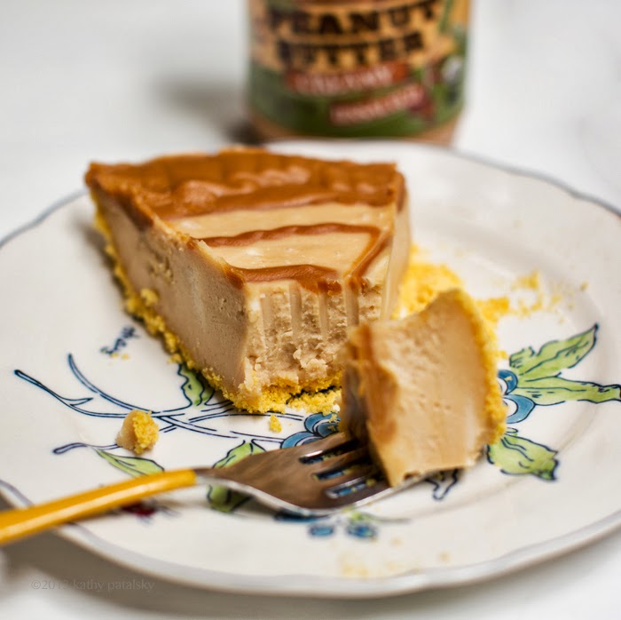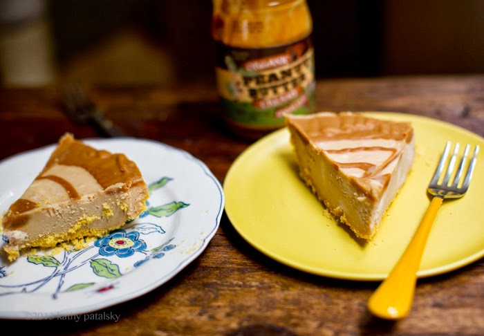 So I'm kinda in crazy-busy mode this afternoon as I pack, run errands, confirm travel plans and pamper my kitty as much as possible because she gets so sad when I leave her. And today, just before I fly out the door I am sharing something I know you all will love. My Triple Peanut Butter Swirl Vegan Cheesecake...