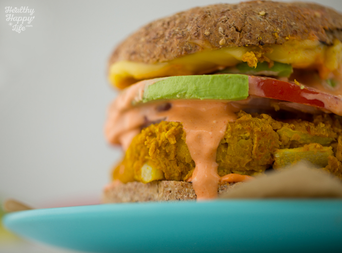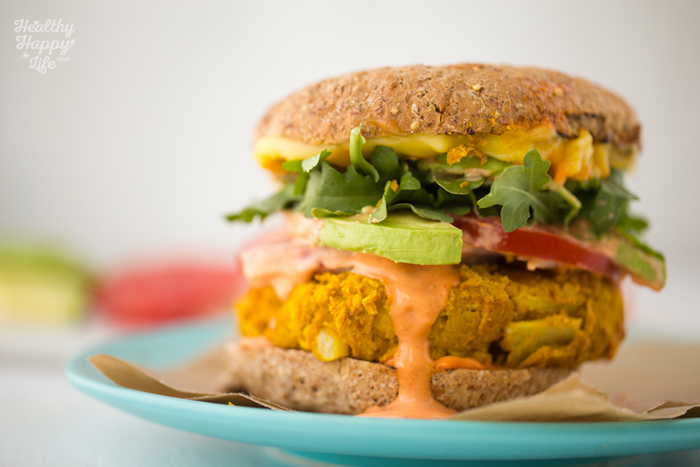 Tags: burger,veggie burger,vegan,entree,dinner,summer,turmeric,beans,avocado,secret sauce,spicy