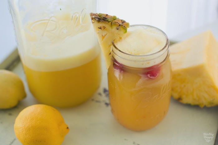 Pineapple Lemonade Tip: Prep Chopping. When you slice your fresh pineapple be sure to remove all of the stringy-tough core. That core is very tricky to blend (even in a Vitamix!) and can lead to some excess pulp. If you do not remove all of the core before blending you may want to strain the juice before serving. You can re-blend the strained juice to revive that yummy pineapple froth. I personally didn't mind the pulp though.