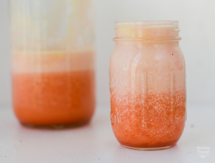 1. Add all the ingredients to a high speed blender like a Vitamix and blend well until smooth and frothy. Tip: Strain lemonade for a super pulp-free version. However I love the added fiber you get from the pulp!