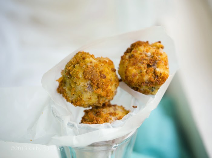 Tip: Try to only fry as many balls as you all are going to eat right away. If you have more risotto, you can always save that in the fridge for a few days. Risotto keeps better than pre-fried balls!
