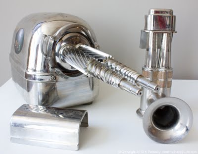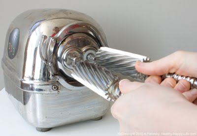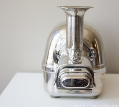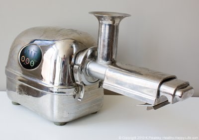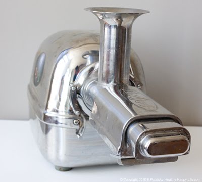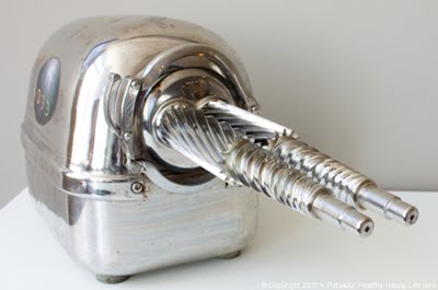 Before I begin the juicing part of my Juicing for Health (and fun) series, I want to introduce you to a juicer. Meet my juicer. Isn't he cute? He's missing a gear in the photo above, but then you can see his smile. Juicers are also called juice extractors. Or even juice pressers. There is a bit of mystery about how high quality juicers actually work - from the inside out. This post will hopefully enlighten you. You'll get a peek inside my juicer and find out how it turns a cold hard apple into fresh silky juice. I'll also discuss RPMs, steps to juicing and a fun fact about the one common fruit I never juice. Meet my juicer...