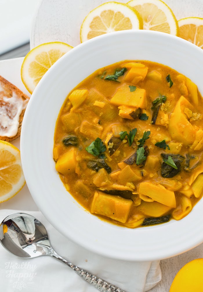 Meyer Lemon Ginger Garlic Turmeric Curry Pasta-Potato Soup