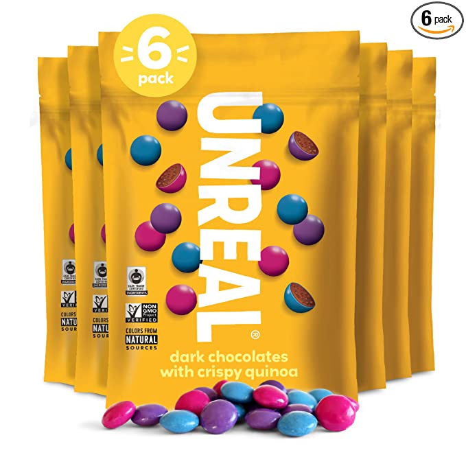- Unreal Candy: Their line of vegan chocolates includes peanut butter cups, chocolate-covered gems, and other fun, plant-based alternatives to classic candies.