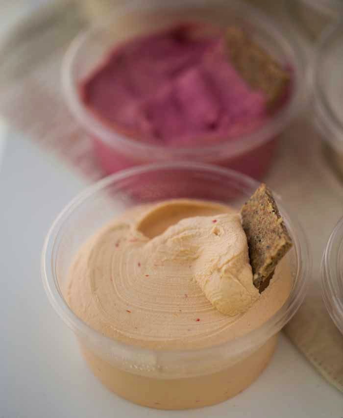 Ingredients: 100% raw certified organic nuts. Most products are made using cashews as the main ingredients. However they also make a macadamia nut cheese, and one with Brazil nuts. They also use ingredients like hemp, kale and even blue green algae.