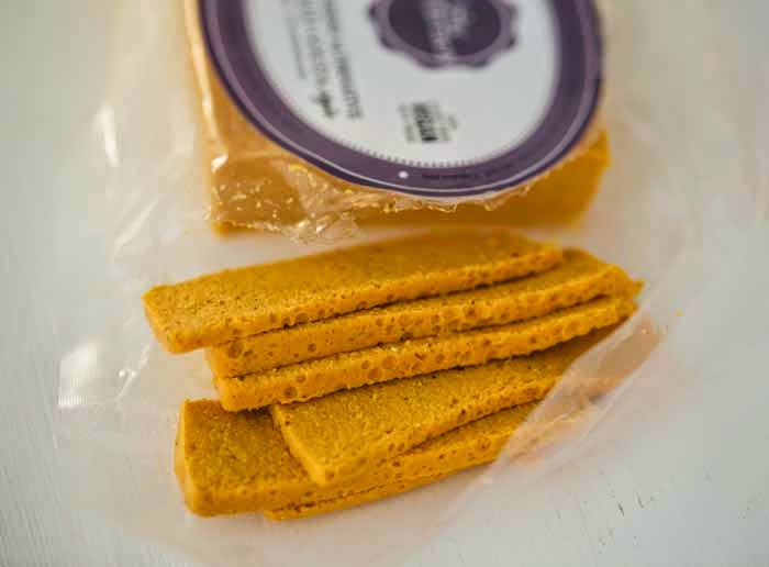 Kathy's Review: I love Teese as a super nostalgic version of vegan cheese. You know, the kind that is bright orange and loaded with flavor. Even though the ingredients may not be my favorite, for a once in a while nacho-fest, this cheese is really fun.
