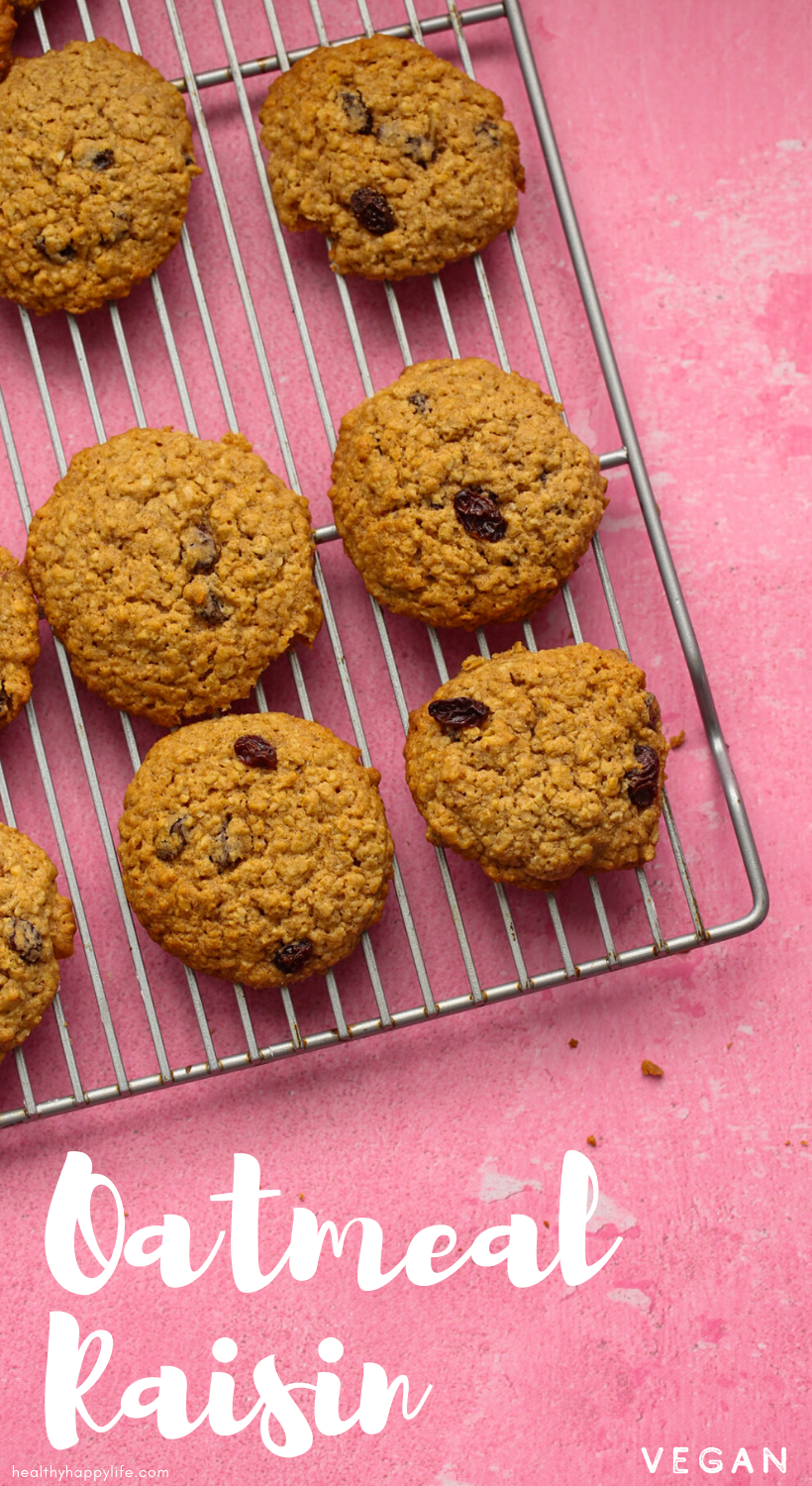 These vegan Oatmeal Raisin Cookies turned out better than I could have hoped. I'm nibbling one right now as I type and in a blissful cloud of cinnamon, oats, butter and vanilla. These are tender and slightly fluffy, with loads of chewy raisins and chopped mixed nuts studding the softly textured insides.