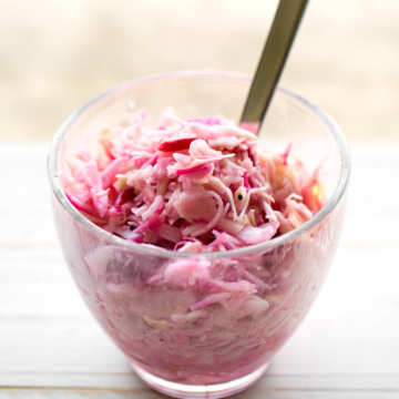 I made this Pink Cole Slaw a few days ago and have been re-making it again and again (and again today!) because it is so easy, yummy and versatile. Cole slaw is a flavor-enhancer for so many meals. And a great way to get excited about veggies and salads! Plus, it is just so darn refreshing. Get the recipe!..