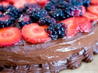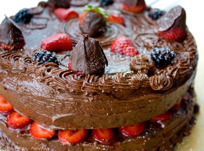 Chocolate-Covered-Berries. And what goes better with chocolate that fresh berries. Strawberries and blackberries to be exact. Thus my creation of this Chocolate Covered Strawberry Layer Cake. It's 100% vegan and incredibly decadent. To keep it extra-healthy, I made an additional portion of the mixed berries and served a few spoonfuls of them on top of the cake slices. Less cake, more antioxidant-rich berries. Yum.
