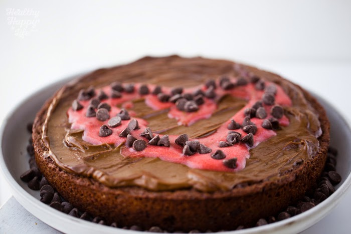 Double Chocolate Ganache Strawberry Layer Cake. Vegan!