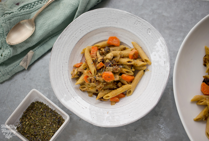 Rustic. Romantic. Vibrant. Savory. Sweet. Fragrant. This Herbs de Provence Garlic-Shiitake-Lemon Pasta is lovely summertime fare. The tender penne pasta is wrapped in a lemon-garlic herb sauce and studded with earthy shiitake mushrooms, caramelized onions and sweet carrots. This is a pasta dish I whipped up using "whatever I had on hand" but after tasting the results, this recipe will be one I will make again and again...