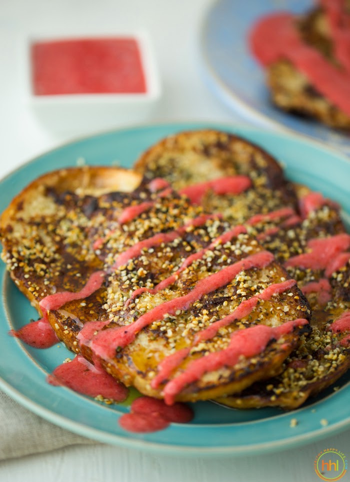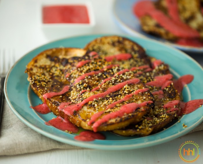 6. Toppings. Toppings like sauces and compotes for French toast can totally be veganized. Apple-cinnamon, blueberry or strawberry like today's recipe. Need butter? Try Earth Balance.