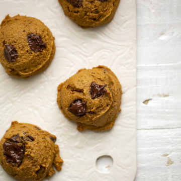 I used a whole wheat pastry flour, but you can experiment with all purpose flour or even a gluten-free blend, if desired. these are tender and buttery, sweet, but not too sweet. They have a sort of pumpkin pie meets chocolate chip cookie flavor.
