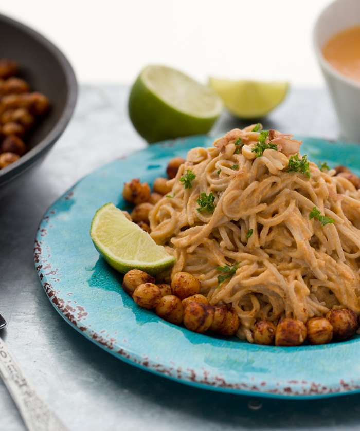 Anything with peanut sauce always wins me over! Love that you used chickpeas. I use them frequently in my pasta dishes for a great source of vegetarian protein. yum!