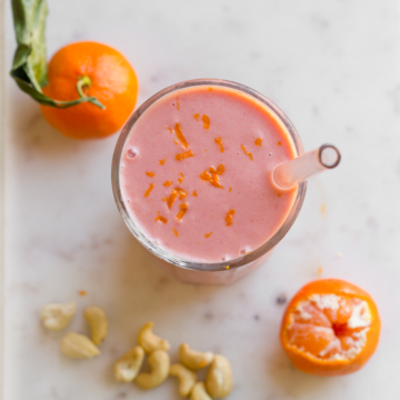 Blending Tip: Blend the first part of the smoothie (with the cashews and satsumas) very well. This will smooth out the fiber in the citrus and any chunks from the nuts. You want silky smooth before adding in the frozen ingredients.