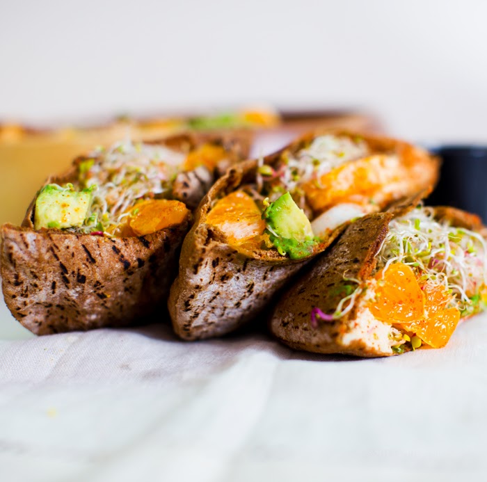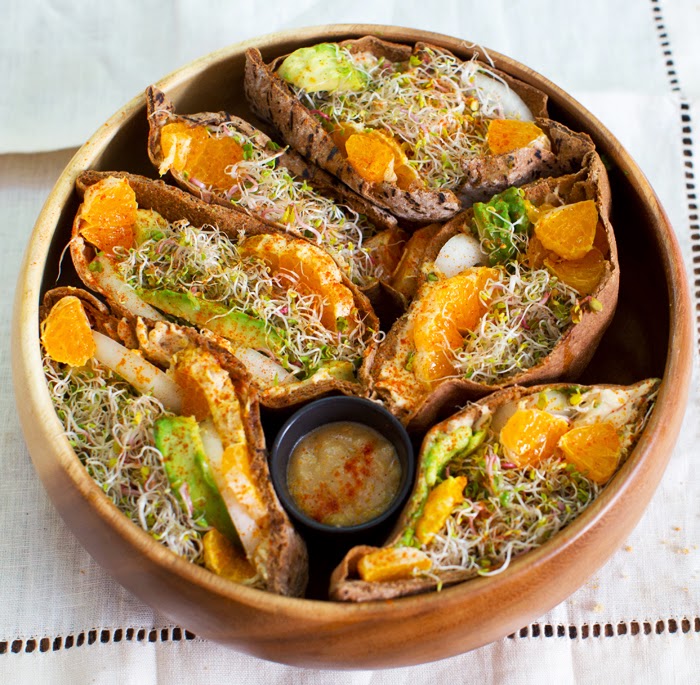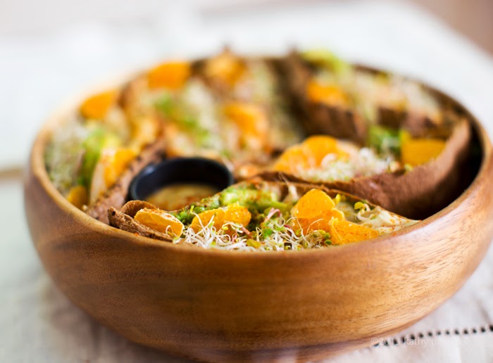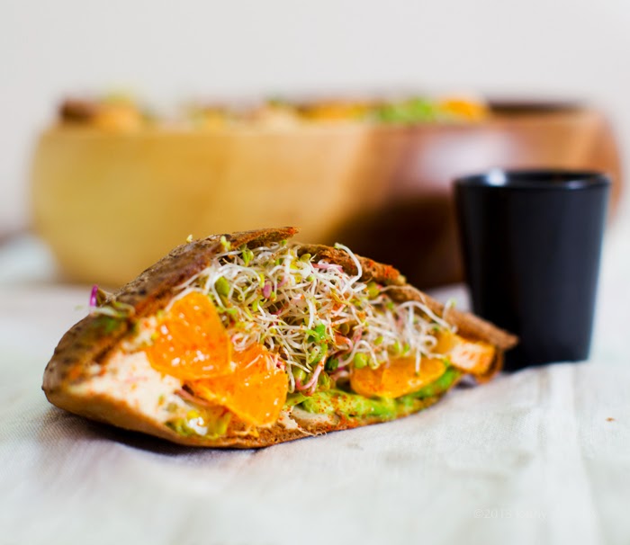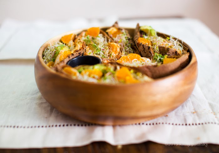 I made this subbing out grapefruit for the orange and arugula for the sprouts. What a clever idea! I didn't expect to, but totally loved the tangy citrus element. Thanks, Kathy!