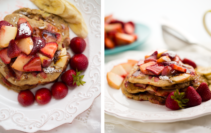 Fresh strawberries are at their best in summertime! So whip up some oat-flour, buckwheat or all purpose flour pancakes using my pancake guide + recipes. You can also change things up to include peaches, blueberries and more!