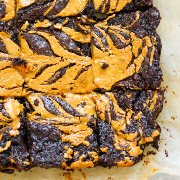 These vegan Super Fudgy Peanut Butter Brownies are easy to whip up and make for the perfect chocolate-craving treat! Plant-based and made using simple ingredients. The peanut butter swirl on top is totally optional, but highly advised. Enjoy these decadent brownies served chilled or warm from the oven.