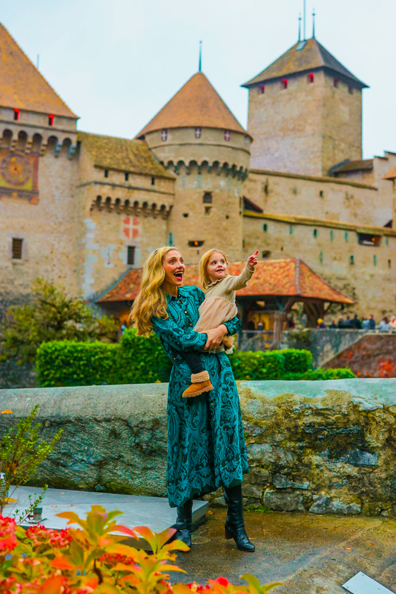 We explored the market again, visited playgrounds and ended out day at Chillon Castle. So gorgeous! Rosalie loved exploring the cobblestone halls and secret passageway in the very old bedroom of the castle. We took some cute photos there too. I tried to dress up a bit to get some cute family pics.