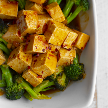 The prep I did for the photos shown was super easy. I simply steamed the broccoli, then added it along with the tofu cubes to a large skillet - along with about ½ cup of the sauce. Then I let that saute on medium for a few minutes just to allow the sauce to marinate the tofu and broccoli a bit. Then I served warm. This would have been delicious (and more filling for like a dinner meal) served over fluffy rice or quinoa. As is, this is a great lunch dish!