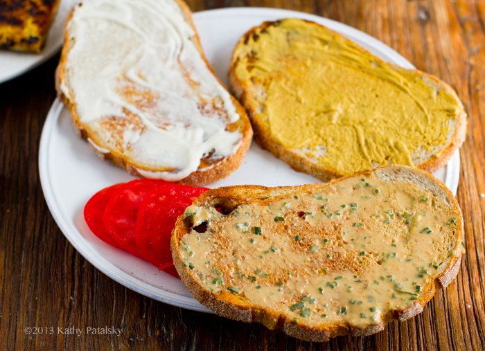 Would be nice to have two symmetrical sandwiches, side by side, but it never happens, one always looks better! I love the fact that you had 3 spreads, that makes it even more fun to eat!