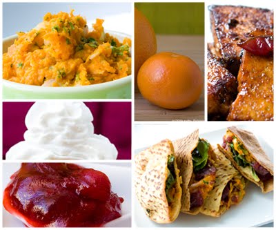 Mornings are no place for stuffing and leftover tofu, but grab a warm zesty cranberry muffin and everything will be OK. Hot chai on the side and you are set. Simply make your favorite muffin recipe and fold in about a ½ cup of cranberry sauce as the last step. You can even fold in some chopped pecans for texture and added flavor.