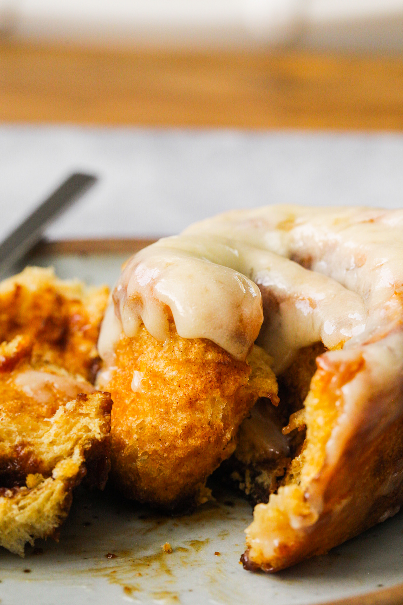 For the fluffiest cinnamon rolls, make sure you allow your dough to rise for at least 90 minutes for the first rise. For the second rise, a good 30 minutes works.