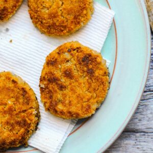 These fritters have a gorgeous golden pumpkin color to them. Browned crispy edges from those panko breadcrumbs and the most delicate and nutty, moist yet solid centers. Please not that these fritters are delicate, but they absolutely stay together once pan-fried. I also use Panko crumbs in my famous Sweet Potato Burgers!