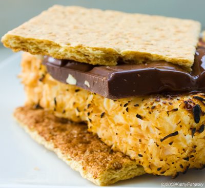 Vegan Marshmallows. There are a lot of vegan cooking blogs that have recipes for making your own vegan marshmallows. But if I'm doing a smores day, it is probably a weekend and I don't want to spend the whole day in the kitchen. So, I like to use an amazing (and NYC local) brand of vegan marshmallows called Sweet and Sara. These marshmallows are heavenly. Soft, fluffy and delicately sweet. And guess what, they hold up incredibly well for toasting over a hot flame. Today I tried the strawberry flavor. Yum! They even have a cinnamon pecan flavor. Double yum. They also have original and toasted coconut flavors. True, these marshmallows are more expensive than their non-vegan counterparts, but come on, these are vegan smores. Sooo worth it.