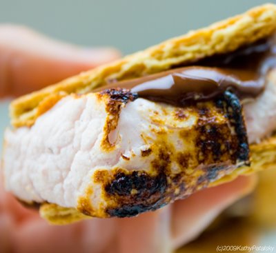Campfire Method: Toast your marshmallows over the fire. Get your crackers and chocolate ready. Place the hot, black-charred marshmallows on top of the chocolate and smush them between the crackers. The hot marshmallow will help melt the chocolate.