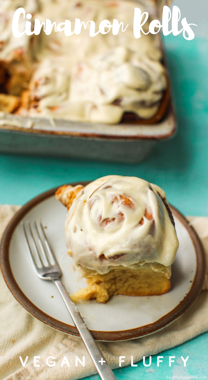 Get ready for some cozy.. These Vegan Cinnamon Rolls are just like the classic I remember buying at the mall when I was a teenager. Fluffy, buttery, rich cinnamon flavor and a buttery, cream-cheesy frosting or glaze on top. Craving some classic cinnamon buns? Here ya go....