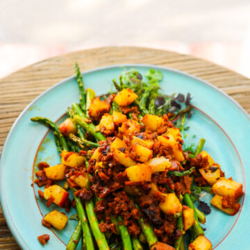Bold flavors shine in this Vegan Maple Bacon Asparagus.
