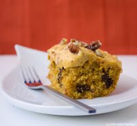 I attempted the frosting with only 1/2 of the cream cheese so I ended up with a make-shift version of the frosting and ended up adding in some of the extra filling from the pumpkin-cheesecake recipe. Very yummy!