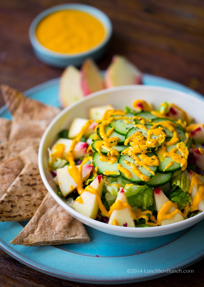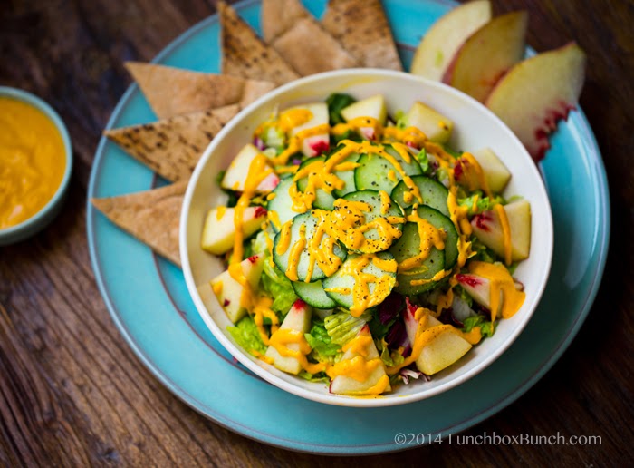 White Peach Salad with Creamy Cashew Carrot-Ginger Dressing