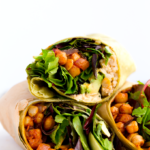 Add one cup of rice to each tortilla, then top with the avocado (about ¼ avocado per wrap) and about ¾ cup of the skillet chickpeas. Finally add in two big handfuls of the greens, to each tortilla. Note: if you are using a smaller tortilla, or a pita pocket, modify amounts as needed. You could also scrap the bread and serve this as a salad.