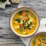 This cozy vegan sausage, potato, bean and kale soup is perfect for a nourishing lunch of dinner. Fast and easy.