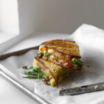 Flip the sandwich and repeat with pressing down the bread or covering the pan with a lid. The flipped bread side should be lightly browned by now with darker, toasty edges. Give the sandwich another 2-3 minutes to allow the cheese to melt.
