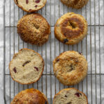 Preheat oven to 425 and line a baking sheet with parchment paper.Bring a large pot of about six cups of water to a bowl. Add the barley malt syrup. Add 2-3 bagels at a time and bowl for 1-2 minutes each. Transfer boiled bagels to a parchment paper-lined baking sheet. Repeat with all the bagels. While bagels are boiling, you can be dipping the already boiled bagels into any toppings you want to use.