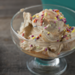 Swirl the salted caramel sauce into the ice cream. Then place the ice cream in the freezer. Your ice cream and caramel should be ready to scoop and serve in about 20-30 minutes, depending on how cold your freezer is.