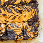 Fudgy and rich vegan brownies with swirled peanut butter on top.