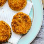 Remove the cooked patties from the pan and place them on a paper towel on a platter. Let them rest for at least five minutes before serving. Repeat with all of your pumpkin mixture. Add another tablespoon of oil to the pan with each new batch of patties.